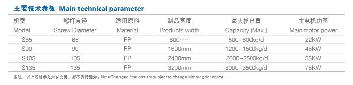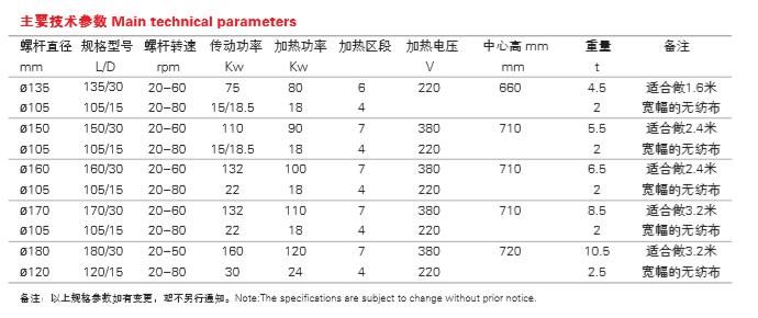 Non-woven fabrics Extruder are specialized in PP Non-woven fabrics production. Normally it uses two extruders in series, the screw L/D of the main extruder is 30:1, the ancillary extruder mainly used for machining leftover material and flot-sam drapery which can be recycled on the line, the L/D is mainly 15:1. various kinds of the extruder model for different width Non-woven fabrics products.