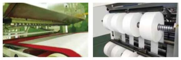 The production line use PE air-permeable plastic granules as raw material, and uses extrusion casting method to melt-extrude the PE-modified air-permeable plastic granules containing inorganic filler through a flat die and the roller is stretched at a high rate to produce a sub-nanometer micro Porous membrane.