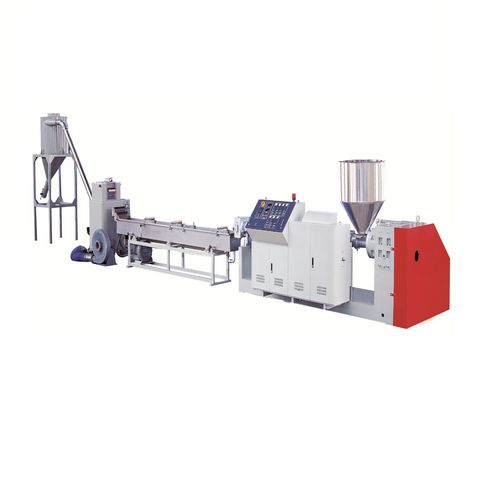This is pelletizing extruder has the special screw design and different configuration, it is suitable for the recycling and pelletizing of raw material such as PP, PE, PET, PS, ABS, PA, PVC, PC, POM, EVA, PMMA and the pelletizing of the raw materials with different colors. The gearbox is high torque designed which attains the functions of low noise and stable operation. The surface of the screw and barrel has been special treated so that the screw and barrel are wearable, they can have a very good plastification and mixing effect and production capacity is high. The extruder has the vacuum vented design which can exhaust the vapor or gas during the production, so that the output can be more stable and pellets are more dense.